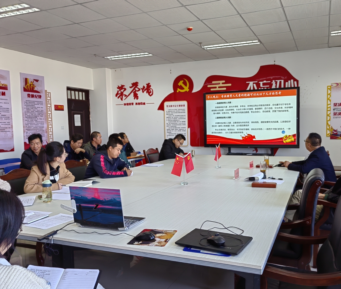 光伏工程技术专业教研室朱亮亮、张珍奇、董世红和李涛老师作了课程思政教学经验和心得交流发言。结合专业课程教学,阐述了对课程思政的认识与理解;讨论了如何结合光伏组件制造、平面机构自由度等教学内容,对员工进行系统的中国特色社会主义和中国梦教育、社会主义核心价值观教育、劳动教育、心理健康教育、工匠精神教育,坚定员工理想信念,切实提升立德树人的成效。
