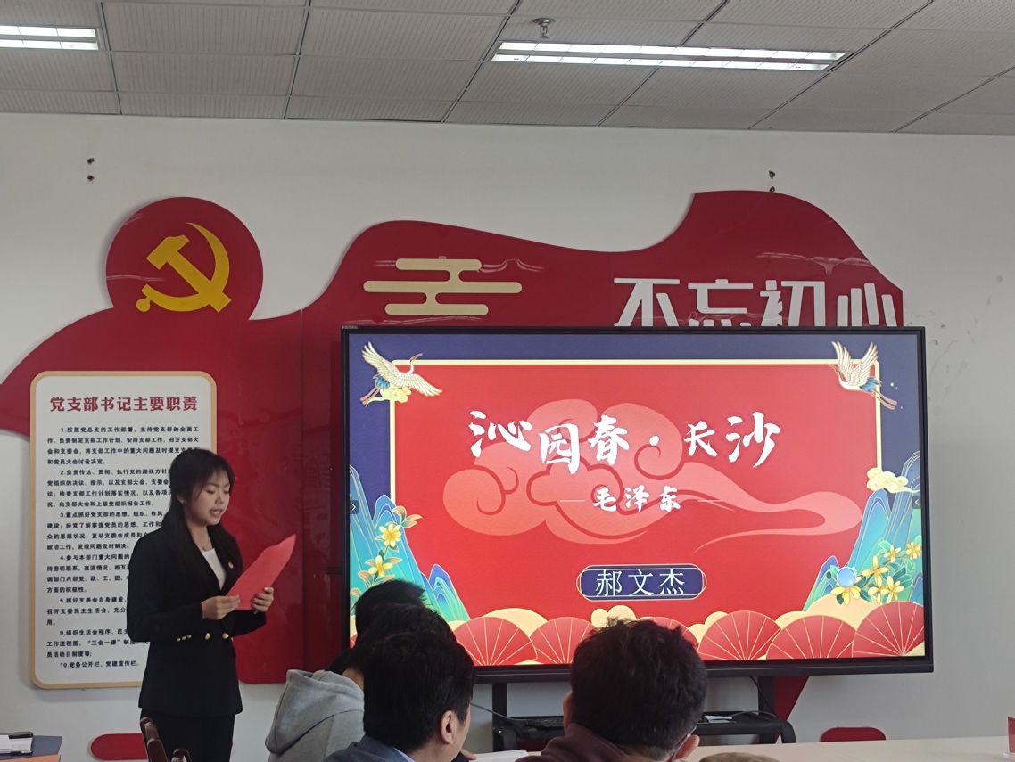 活动中,七位员工团员围绕时代精神、爱国主义、民族团结等主题,分别带来《红船,从南湖起航》、《梅岭三章》、《沁园春·长沙》、《读中国》、《青春中国》等红色经典佳作,他们或声情并茂、激情飞扬,或娓娓叙述、低沉内敛,以真挚的情感、铿锵有力的声调诠释着诗歌中的每一个字句,展现出了新时代青年的风采。通过同学们的深情朗诵,大家跟随诵读者一起重温历史,回顾了中国共产党的心路历程和光辉成就,感受了中国共产党历经百年带领中国人民实现中华民族从站起来、富起来到强起来的伟大飞跃,激发了大家爱党爱国、敬业奉献的为民情怀和责任担当。