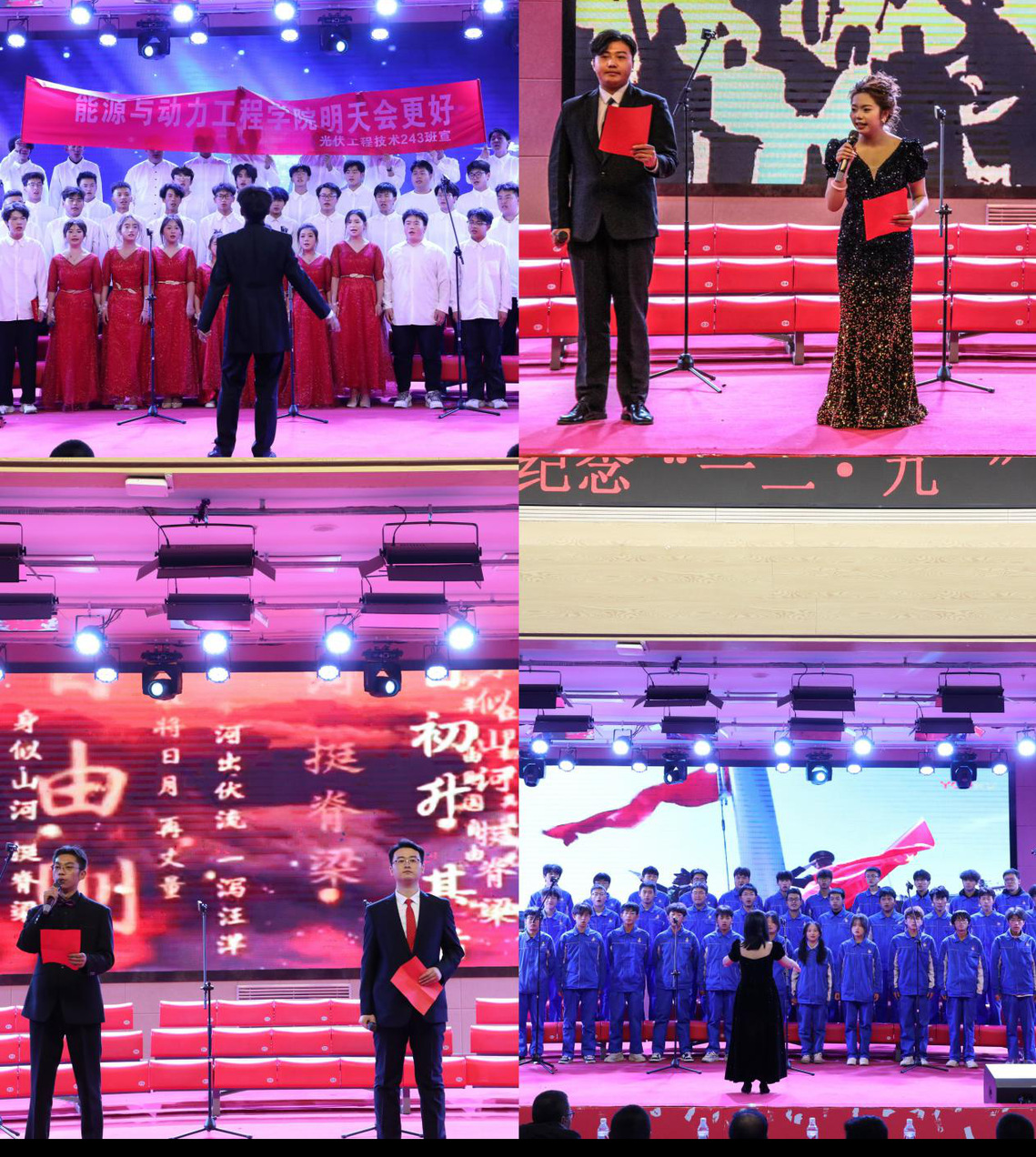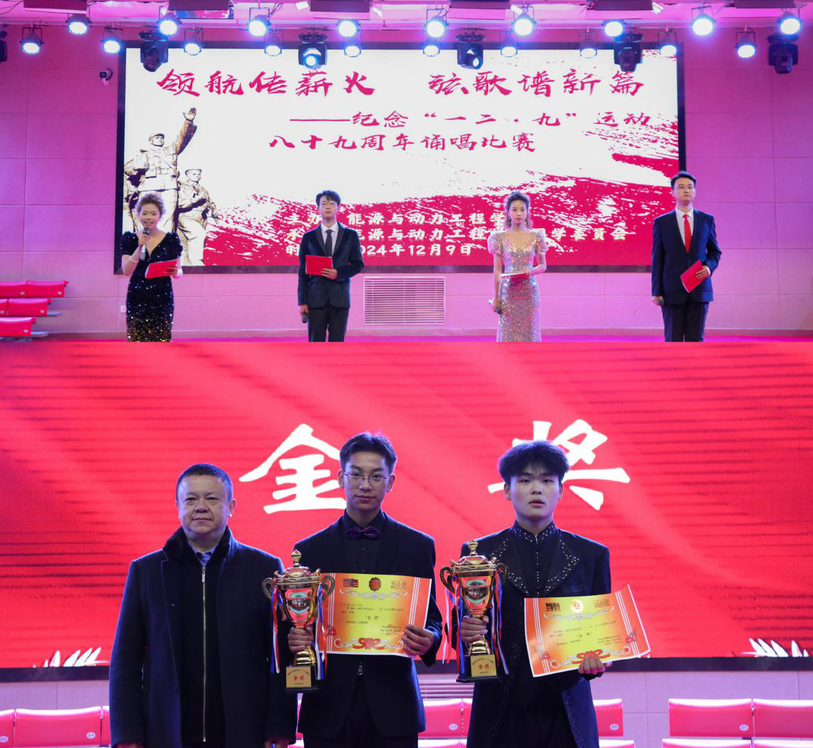 《少年中国说》《青年中国,吾辈当歌》《少年心怀乌托邦,勿忘历史共担当》等节目,诵读者们用铿锵有力的声音回顾了历史,展现出当代青年对先辈精神的传承与担当,抒发了对国家富强、民族复兴的坚定信念。经过近2个小时的激烈角逐,光伏工程技术243班、热能动力工程技术232班获得了本次班级合唱比赛和朗诵比赛的金奖。